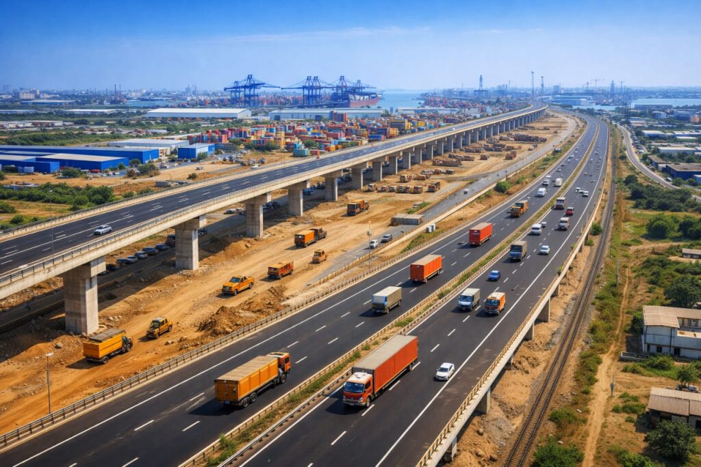 📷 Foto ilustrativa: rodovia expressa e infraestrutura logística em expansão na Índia