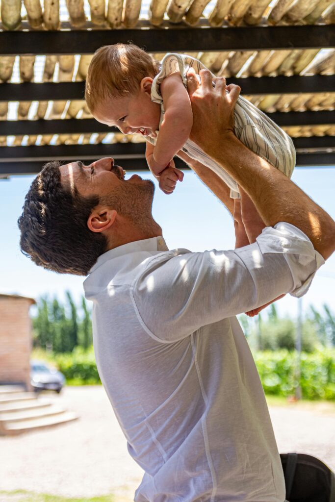 Pai segura bebê no colo, reforçando a presença paterna nos primeiros dias de vida. (Foto: Pexels)
